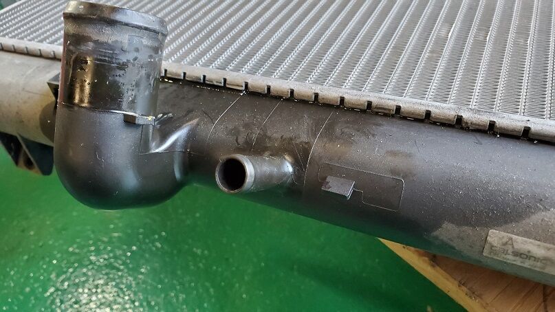 モーター交換にはラジエータを外しますが、その際距離が進んでいる車両の場合は、サブタンクからラジエータアッパータンクに繋がるホースを外すと、熱のせいか触った瞬間にニップルが砕けることがほとんどでラジエーター交換が必要になります。